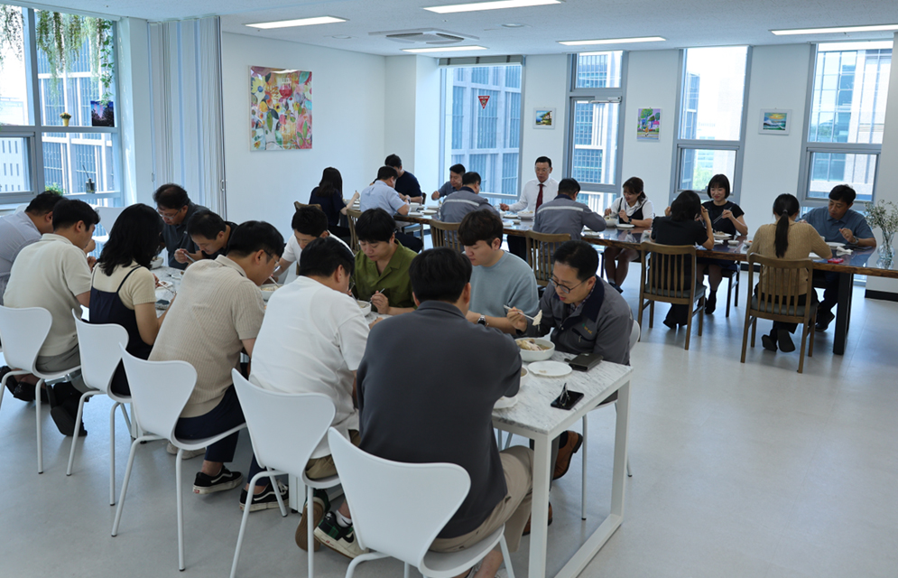 8월 14일 대주·KC 박주봉 회장은 말복을 맞아 임직원들의 사기진작과 원기 회복을 위해 서울사무소에서 직원들과 함께 삼계탕 오찬 행사를 진행하며, 무더위 속 임직원들의 노고를 격려하는 등 소통의 시간을 가졌다.