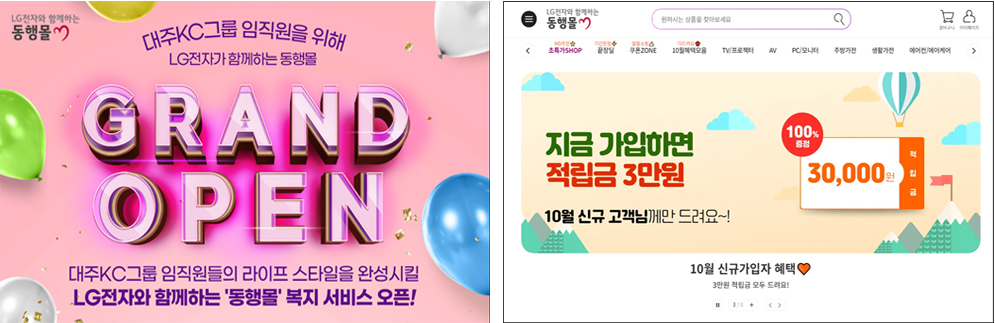 B2B 고객사 대상으로 운영되는 동행몰은 기업들의 임직원 복지를 위해 LG전자 제품들을 제휴 기업에 전용 특가로 제공하는 서비스로 다양한 제품들을 저렴한 가격에 만나볼 수 있다.