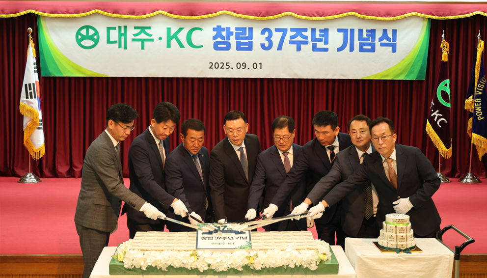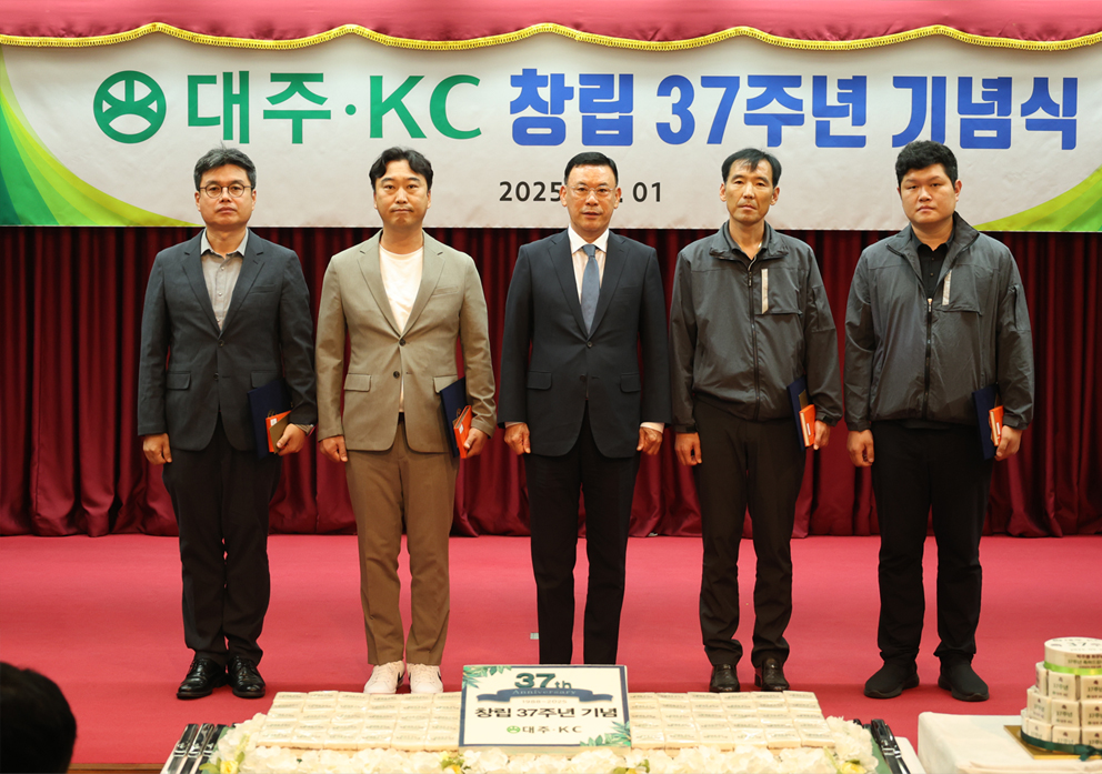 대주·KC(회장 박주봉)는 9월 1일 인천 본사 대강당에서 대주중공업 등 계열사 임직원 100여 명이 참석한 가운데 창립 37주년 기념식을 거행하였다. 이번 행사는 지난 37년간 그룹이 걸어온 발자취를 되돌아보고, 미래를 향한 비전과 각오를 새롭게 다지는 뜻 깊은 자리로 마련되었다.
