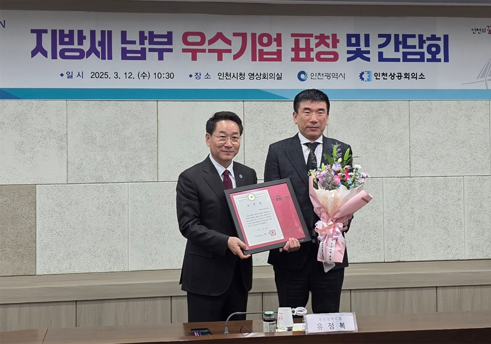 3월 12일 대주중공업은 인천시청에서 개최된 ‘지방세 납부 우수기업 표창 및 간담회’에서 성실한 지방세 납부와 지역 경제 기여를 인정받아 ‘지방세 납부 우수기업’으로 선정돼 표창을 받았다.