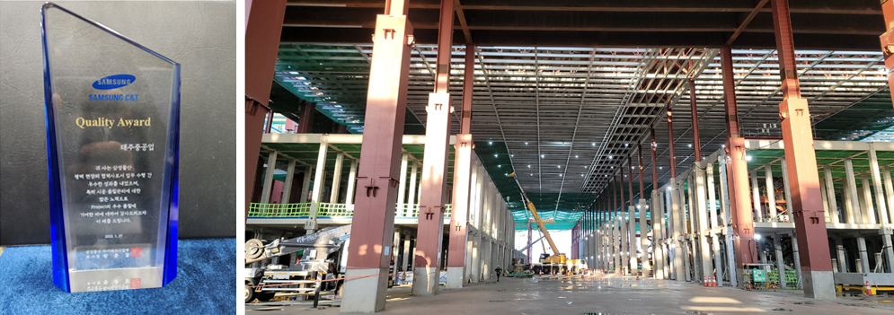 1월 27일 대주중공업 철구사업부는 삼성전자 평택 FAB 3기 신축공사에서 프로젝트 기간 동안 우수한 품질에 기여한 공로를 인정받아 삼성물산으로부터 품질우수 협력사로 선정되어 ‘Quality Award’상을 수상하였다.