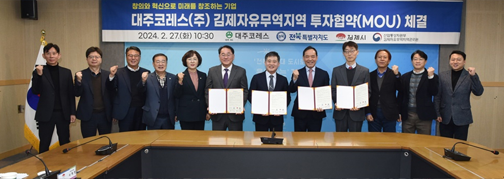 2월 27일 대주코레스는 김제시청에서 전북특별자치도, 김제시, 김제자유무역지역관리원이 참석한 가운데 김제자유무역지역에 167억 원의 투자유치 협약을 체결하였다.