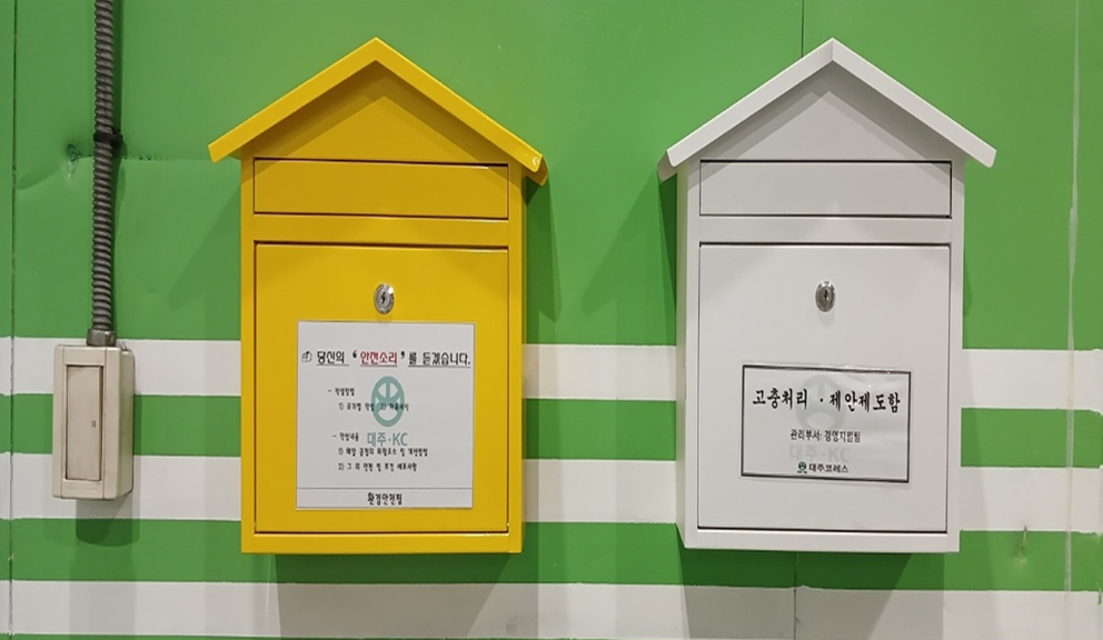첫 번째 사례는 ‘비가동 및 고장 설비에 대한 시각적 경고체계 구축’이다. 기존에는 비가동 또는 고장 상태의 설비에 대한 시각적 식별이 어려워 현장 내 2차 사고 발생 위험이 상존하고, 긴급 대응에도 제약이 있었다. 이에 대주코레스는 설비 상태를 실시간으로 식별할 수 있는 알람 램프 체계를 도입하였다. 정상 가동 시에는 녹색등, 비정상 또는 고장 상태 시에는 적색등이 점등되도록 하여 설비 상태를 직관적으로 파악할 수 있게 하였으며, 현장직 대상 램프 인식 및 대응 교육을 병행함으로써 실질적 설비관리 체계를 구축하였다. 특히, 저비용 고효율 방식으로 신규장비와 설비에까지 적용 가능한 시스템을 마련한 점이 높은 평가를 받았다.