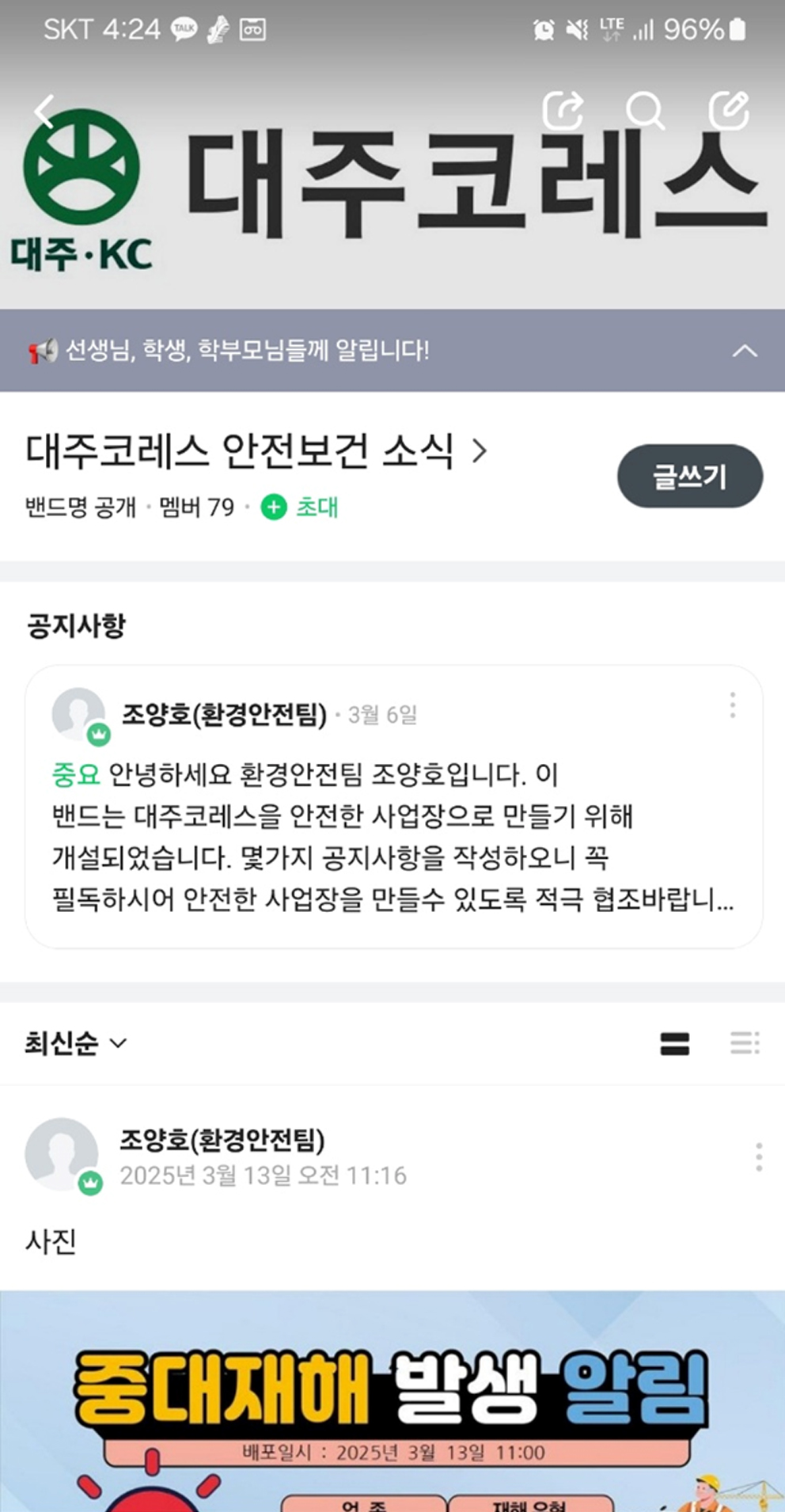 6월 13일 대주코레스는 고용노동부 전주지청이 발간한 『월간 안전보건관리·위험성 평가 우수사례집(2025년 6월호)』에 산업안전 우수사례 사업장으로 소개되었다.