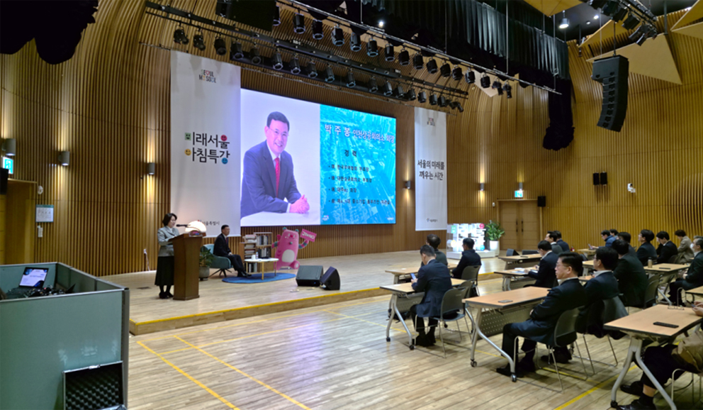3월 7일 대주·KC 박주봉 회장은 서울시청에서 열린 ‘미래서울 아침특강’에서 규제 혁신의 필요성과 적극행정의 중요성을 강조하는 강연을 진행하였다.