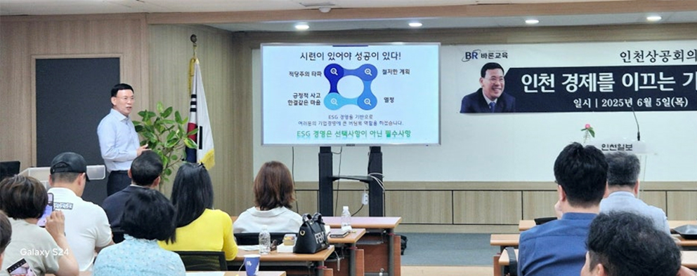 이번 강연은 바론교육과 K-ESG 기준평가원이 공동 주최하고, 인천일보가 후원하는 ESG 전문가 양성과정의 일환으로 마련되었으며, 인천 지역의 기업인 및 기관 관계자, ESG 실무자 등 100여 명이 참석해 뜨거운 관심을 보였다.