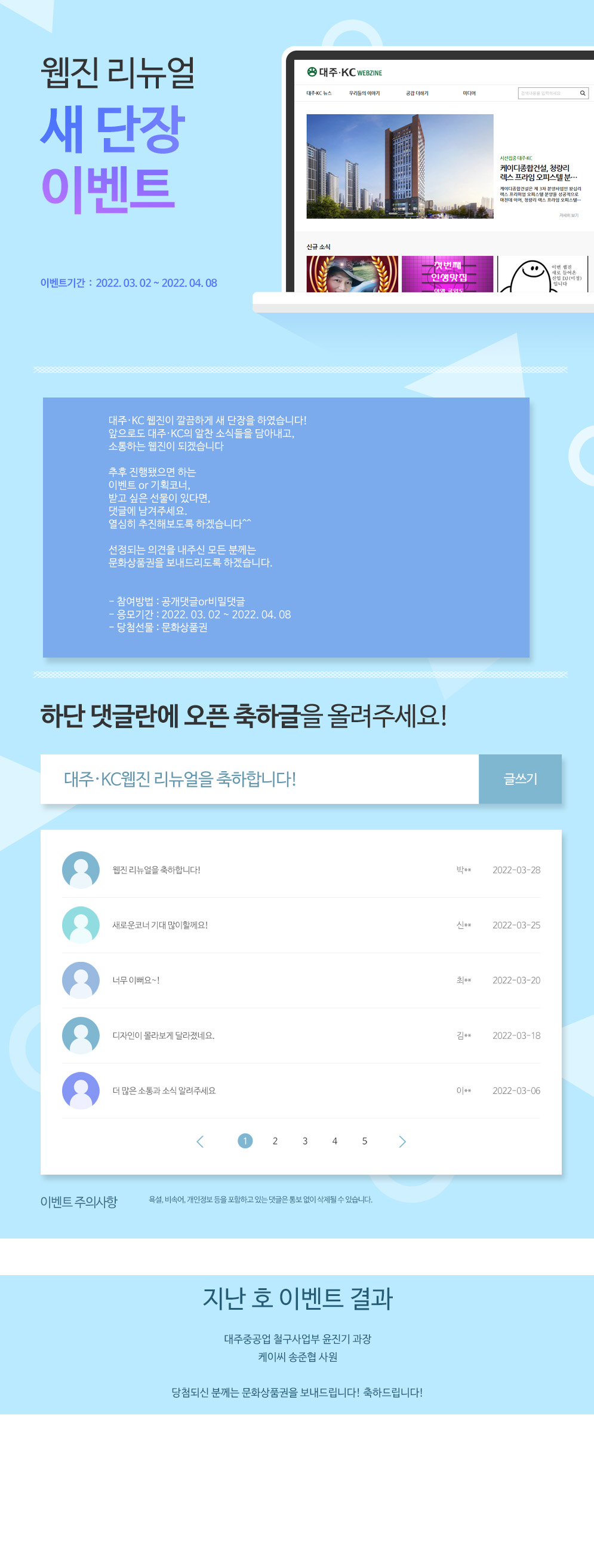 | 2022 상반기 대주·KC 신입사원 소개 Ⅰ (0) | 2022.04.27 |