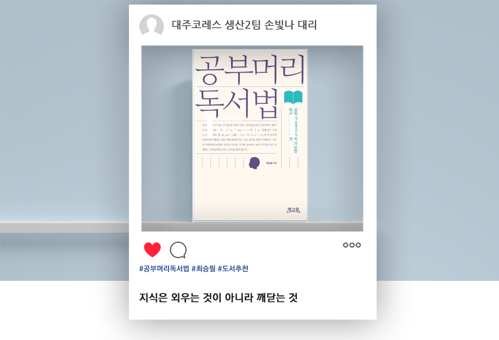 이제는 두 달에 한 권 정도는 책을 읽고 회사 동료들과 독서모임도 하고 있습니다.