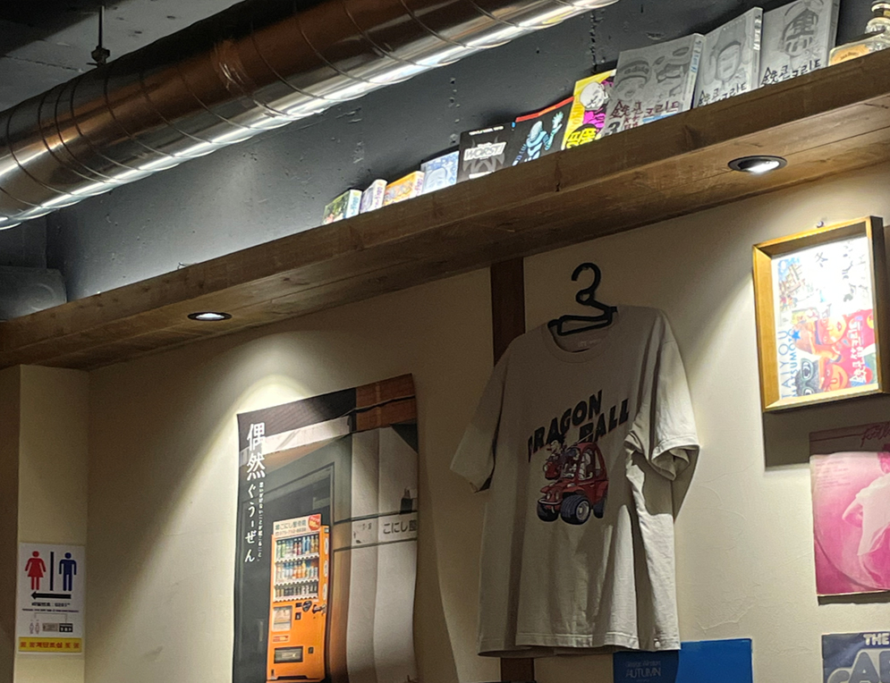 나무와 짙은 색감의 인테리어, 따뜻한 조명, 아기자기한 일본 소품들이 배치되어 있어