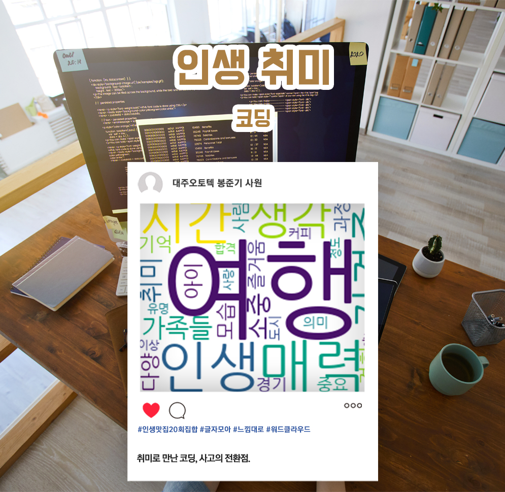 이번 인생맛집에서는 제 삶에 큰 변화를 준 인생취미 ‘코딩’을 소개합니다!