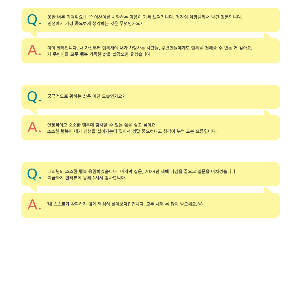 우리들의 이야기/칭찬릴레이 최혜미 대리 대주·KC 운영자 2022. 12. 28. 09:52 대주·KC 재경본부 최혜미 대리 공유하기 게시글 관리 DAEJOO·KC company magazine 저작자표시 비영리 변경금지 (새창열림) '우리들의 이야기 > 칭찬릴레이' 카테고리의 다른 글 이산 대리 (2) 2023.04.25 이정민 사원 (3) 2023.02.22 정진영 차장 (0) 2022.10.25 정지은 과장 (0) 2022.08.30 도현정 과장 (0) 2022.06.28 티스토리툴바 DAEJOO·KC company magazine구독하기