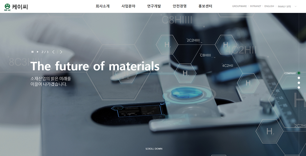 2월 9일 케이씨 홈페이지(http://kc.daejookc.com/)는 국·영문 2가지 버전을 전면 개편하여 오픈하였다.