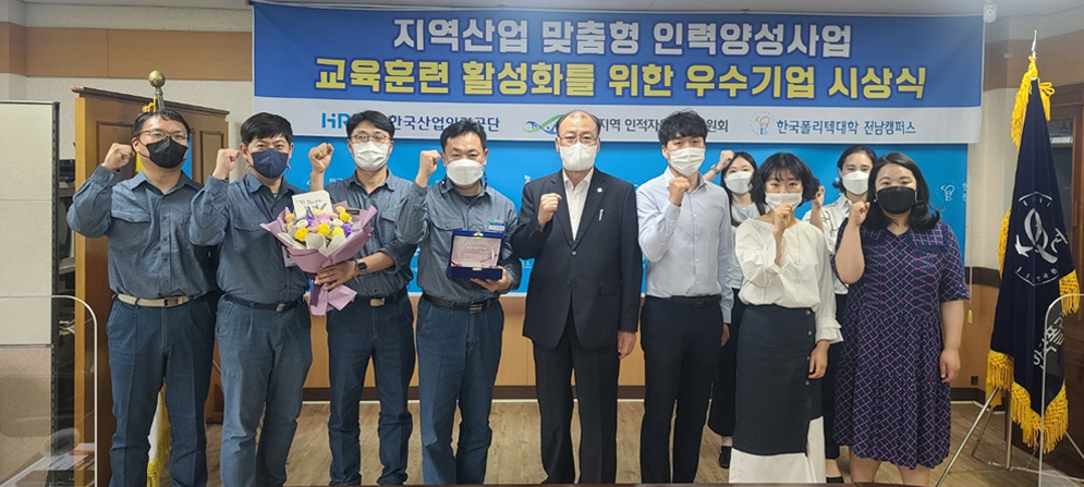 6월 16일 케이씨는 한국폴리텍대학 전남캠퍼스에서 시행하는 ‘2022년도 지역산업맞춤형 인력양성사업 교육훈련 활성화를 위한 시상식’에서 우수 협약기업으로 선정 되었다.