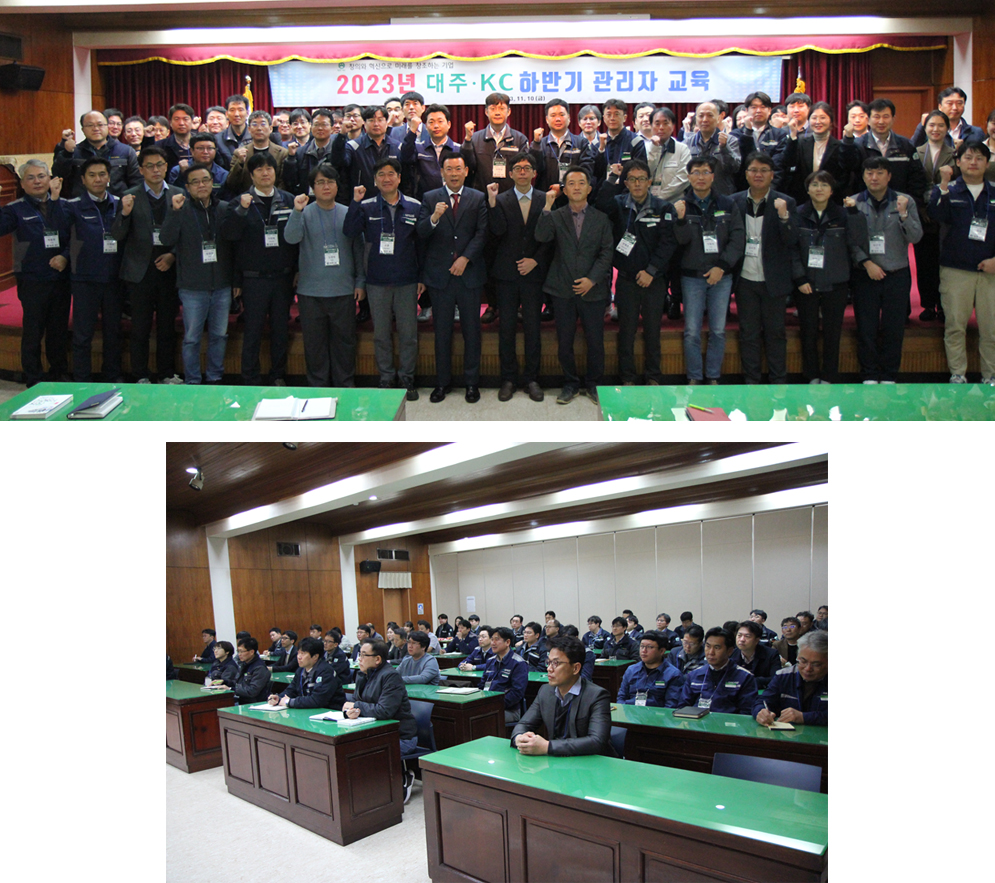 11월 10일 대주·KC는 관리자의 역량강화 및 개정 사항 전달을 위하여 본사 7층 대강당에서 ‘2023 대주·KC 하반기 관리자 교육’을 실시하였다.