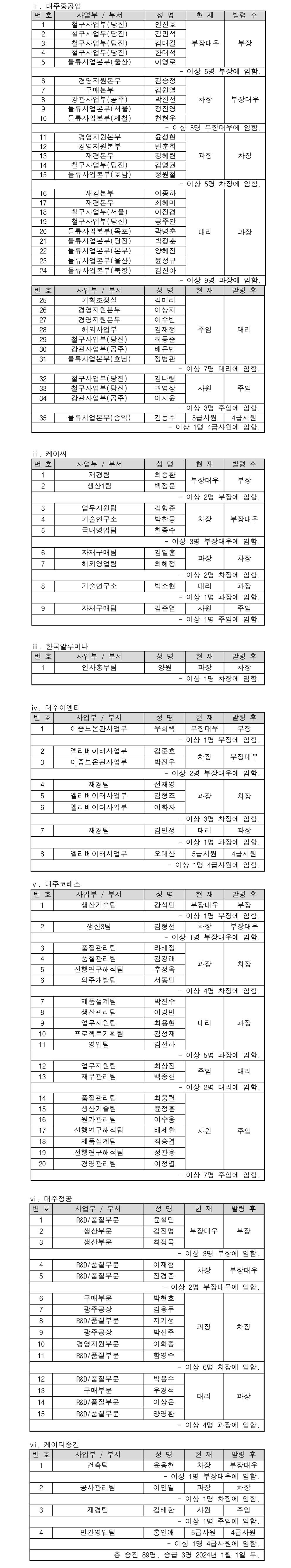 ● 2024년 인사발령(임원승진)