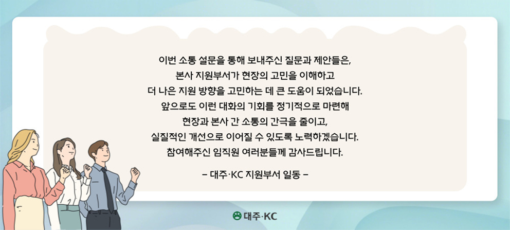 | 대주·KC 제3차 관리자 워크숍 개최 (0) | 2025.06.27 |
