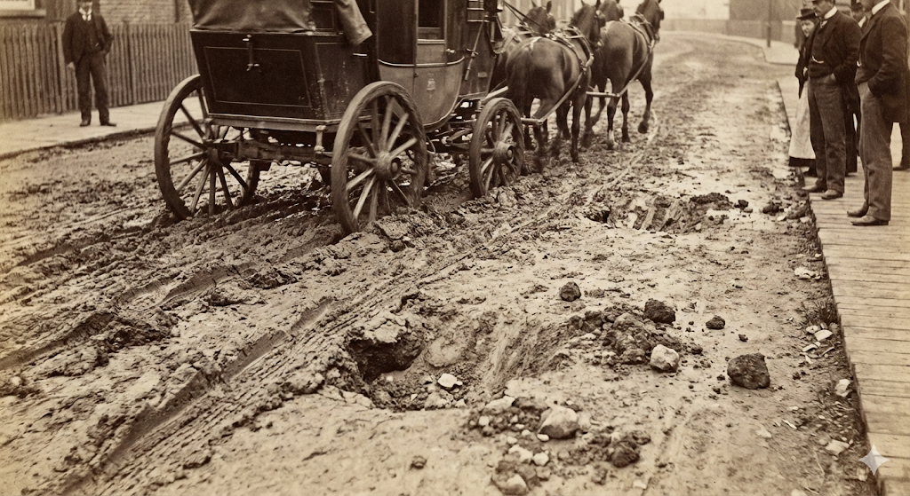 좁고 딱딱한 바퀴와 말발굽이 도로를 찍어 누르는 마차가 오히려 도로 파손의 주범이었고,